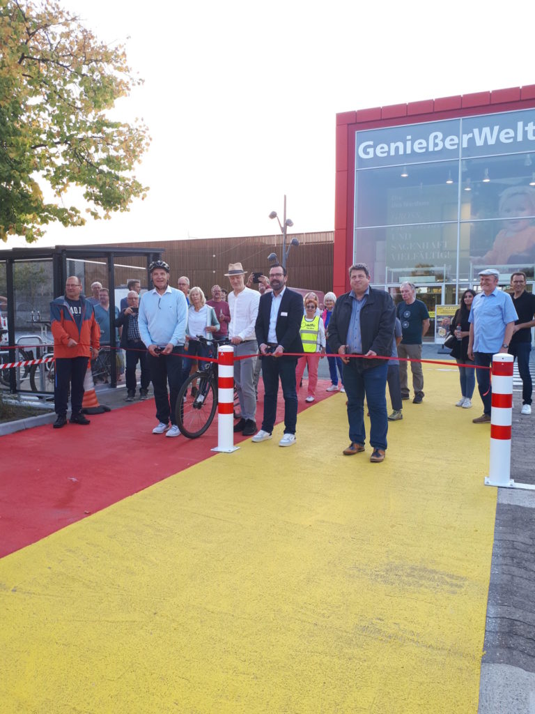 Der neue Rad- und Fußgängerweg auf dem Dodenhof-Gelände wurde am Mittwoch, dem 18.9.2024, offiziell eröffnet. Um 18.30 h durchschnitten Daniel Moos (1. Stadtrat Achim), Tim Willy Weber (Bürgermeister Ottersberg), Rainer Sterna (Ortsbürgermeister Posthausen) und Guido Thome (Dodenhof-Baumanager) das rote Band.