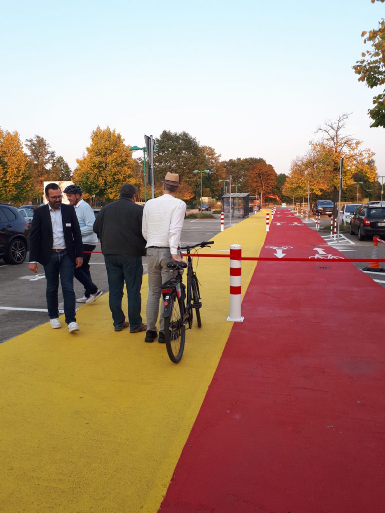 Die Eröffnung fand im Rahmen der Europäischen Mobilitätswoche statt. Die A2O hatte zu einer Sternfahrt eingeladen, an der etwa 40 Achimer*innen teilnahmen. Um 17 Uhr hatten sie sich vor dem Achimer Rathaus bei schönem Spätsommerwetter versammelt. Im Verlauf der Fahrradtour wurden an verschiedenen Stationen Pausen eingelegt.
