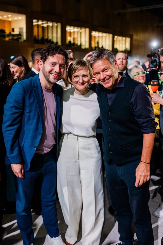 Der neue Bundesvorstand, Felix Banaszak und Franziska Brantner mit unserem Spitzenkandidaten Robert Habeck. Foto: Nils Leon Brauer